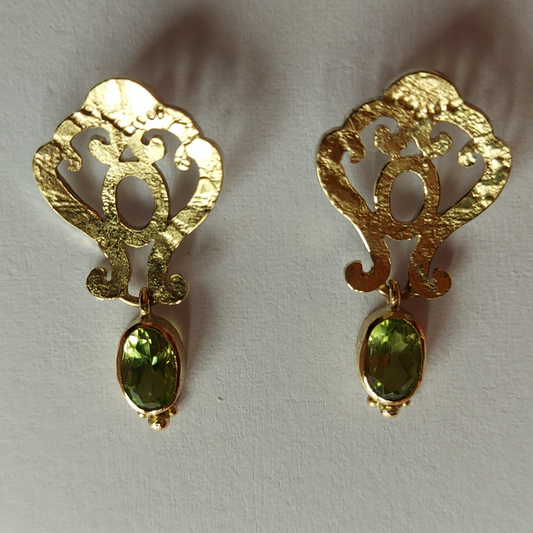 VERKAUFT – Bitte kontaktieren Sie uns für eine Anfertigung in diesem Stil.Peridotohrschmuck ohne Wechselfunktion.